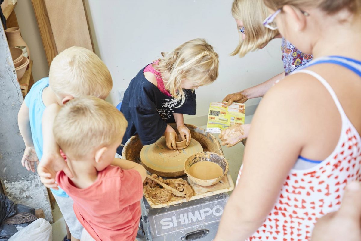 Premiers rires, premiers cris, des enfants qui touchent cette terre humide et froide. Avec pédagogie et patience, le potier nous guide, et nous aide pour que nous travaillions la terre dans le bons sens avec dextérité et assurance.