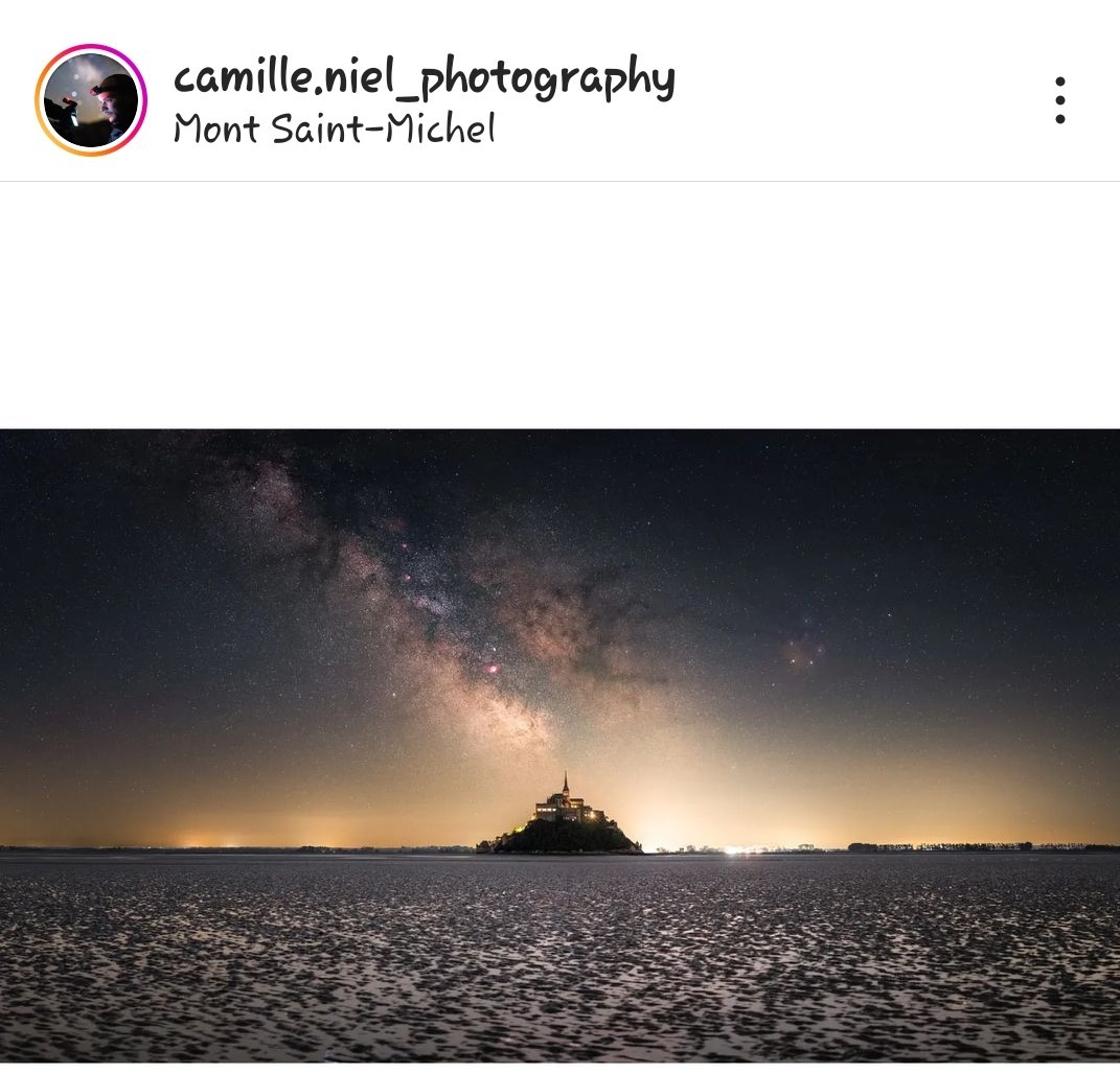 La photographie du Mont-Saint-Saint-Michel sous la voie lactée est disponible à la vente sur le site internet de Camille Niel.