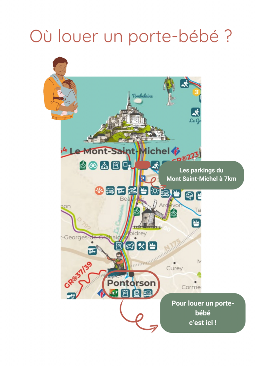 Afin de profiter de votre visite librement et sans vous encombrer d’une poussette, vous avez la possibilité de louer un porte-bébé ! L’agence de location Mont bébé vous propose 3 modèles de porte-bébés légers et confortables allant de la naissance jusqu’à 23 kilos, pour le tarif de 15€ la journée.