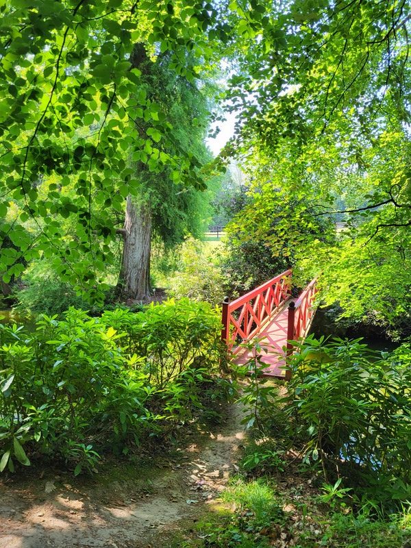 Quand nous pénétrons dans le parc, un sentiment de bien-être et de détente nous envahi. Seul le bruit des feuilles et des oiseaux nous accompagne durant notre promenade. C’est un endroit idéal pour faire une pause ou lire un livre près du lac. Et tout cela avec une très belle vue sur le château ou les fleurs environnantes.