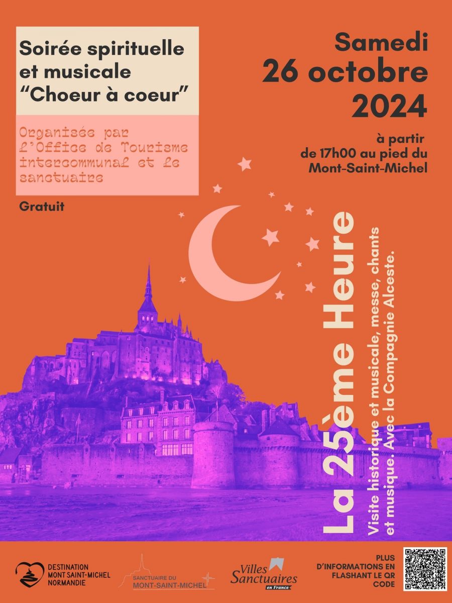 - 17h : Rendez-vous à l’entrée du Mont Saint-Michel pour une visite théâtralisée et chantée du village avec la Compagnie artistique Alceste. Puis montée vers l’abbaye.