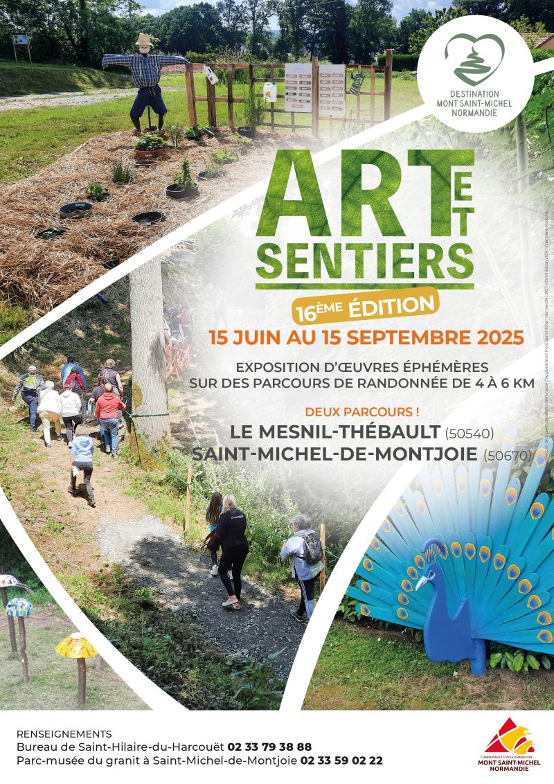 Créé en 2009 à l’initiative de la mairie de Saint-Hilaire-du-Harcouët et de l’Office de tourisme (encore associatif à l’époque), Art et Sentiers s’est d’abord déployé dans les communes de l’ancienne Communauté de Communes. Depuis 2019, cette manifestation a pris son envol et s’installe ainsi au delà de Saint-Hilaire-du-Harcouët pour voyager dans les communes de la Communauté d’Agglomération Mont Saint-Michel – Normandie.