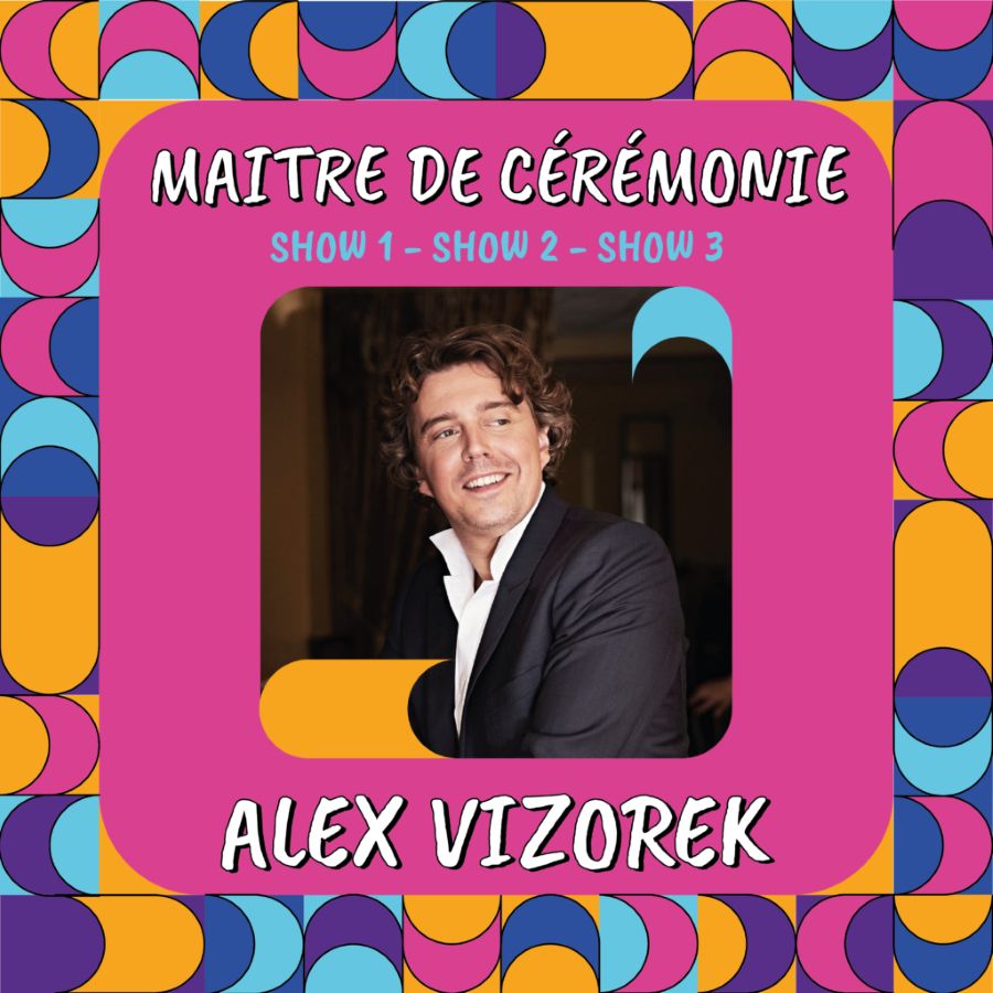 - un maître de cérémonie : Alex Vizorek. Il animera le Show 1 du samedi 5 avril et les Show 2 & 3 du dimanche 6 avril.