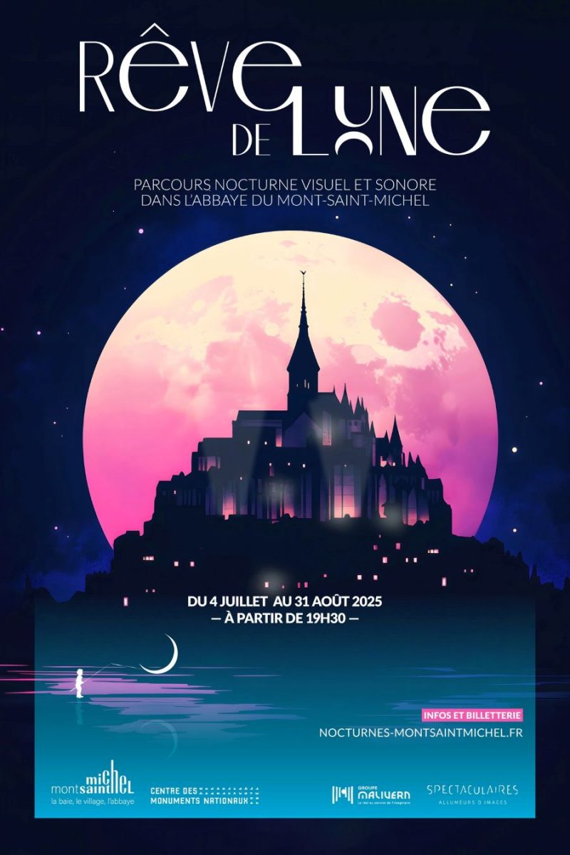 Rêve de lune est un parcours poétique composé d’installations visuelles et sonores sur le thème de la lune. Il traverse l’abbaye du Mont Saint-Michel d’est en ouest.
