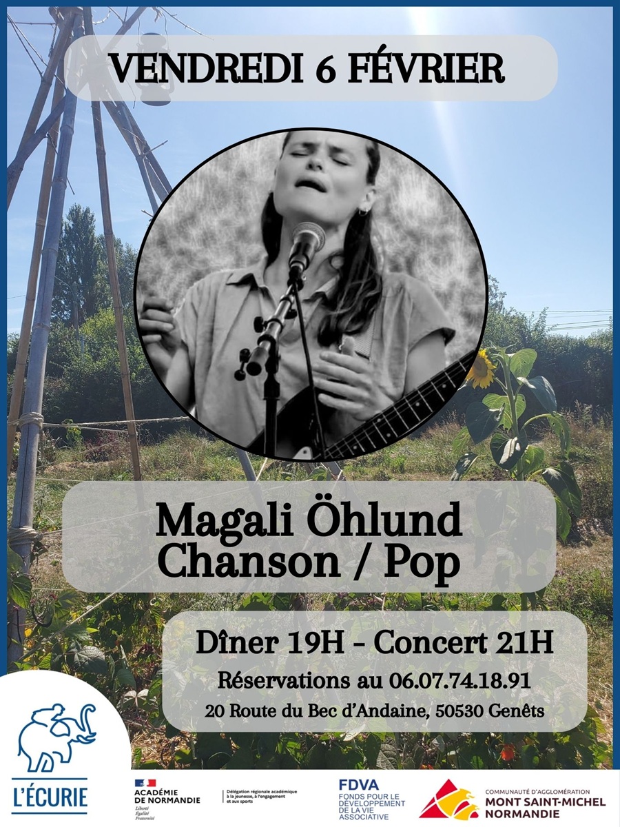 Dîner-concert avec Magali Öhlund, chanson / pop. Dîner à partir de 19h et concert à 21h.