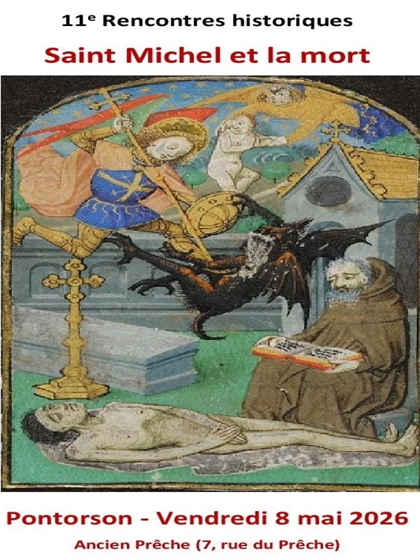 Le 8 mai 2026, vous est proposée à Pontorson, porte du Mont Saint-Michel et cité liée au Mont et au passage des pèlerins, une journée de rencontres historiques avec des communications inédites sur les relations entre Saint Michel et la mort, dans les textes sacrés, dans le culte et dans l’iconographie.