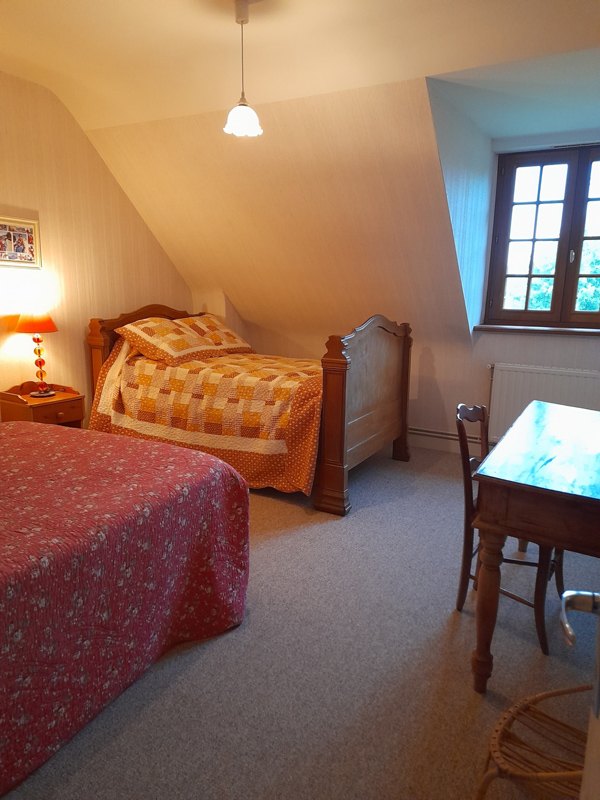 Les chambres, la salle de bains et les toilettes sont au premier étage.