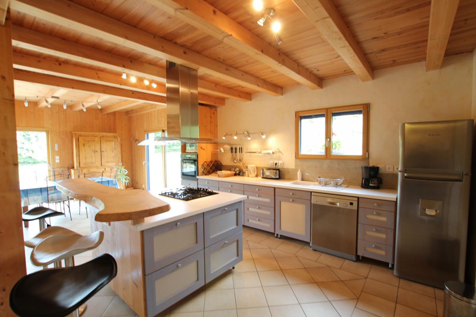 Maison indépendante entièrement en rez de chaussée. Séjour. Coin-cuisine. Buanderie. Chambre 1 (1 lit 140) Ch2 (1 lit 140) Ch3 (1 lit 140). 1 lit bébé, 1 chaise haute. Salle d'eau. Wc. TV avec lecteur DVd. Lave-linge. Lave-vaisselle. Poêle à bois. Wifi. Congélateur. Chauffage par aérothermie par le sol compris. Bois fourni. Draps et linge de maison en location. Service ménage en supp. Terrain non clos privé. Salon de jardin. Balançoire. Barbecue. Terrain de pétanque. Parking.