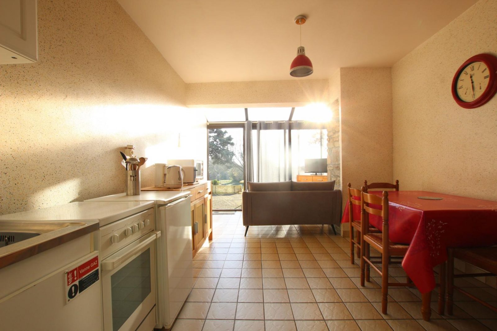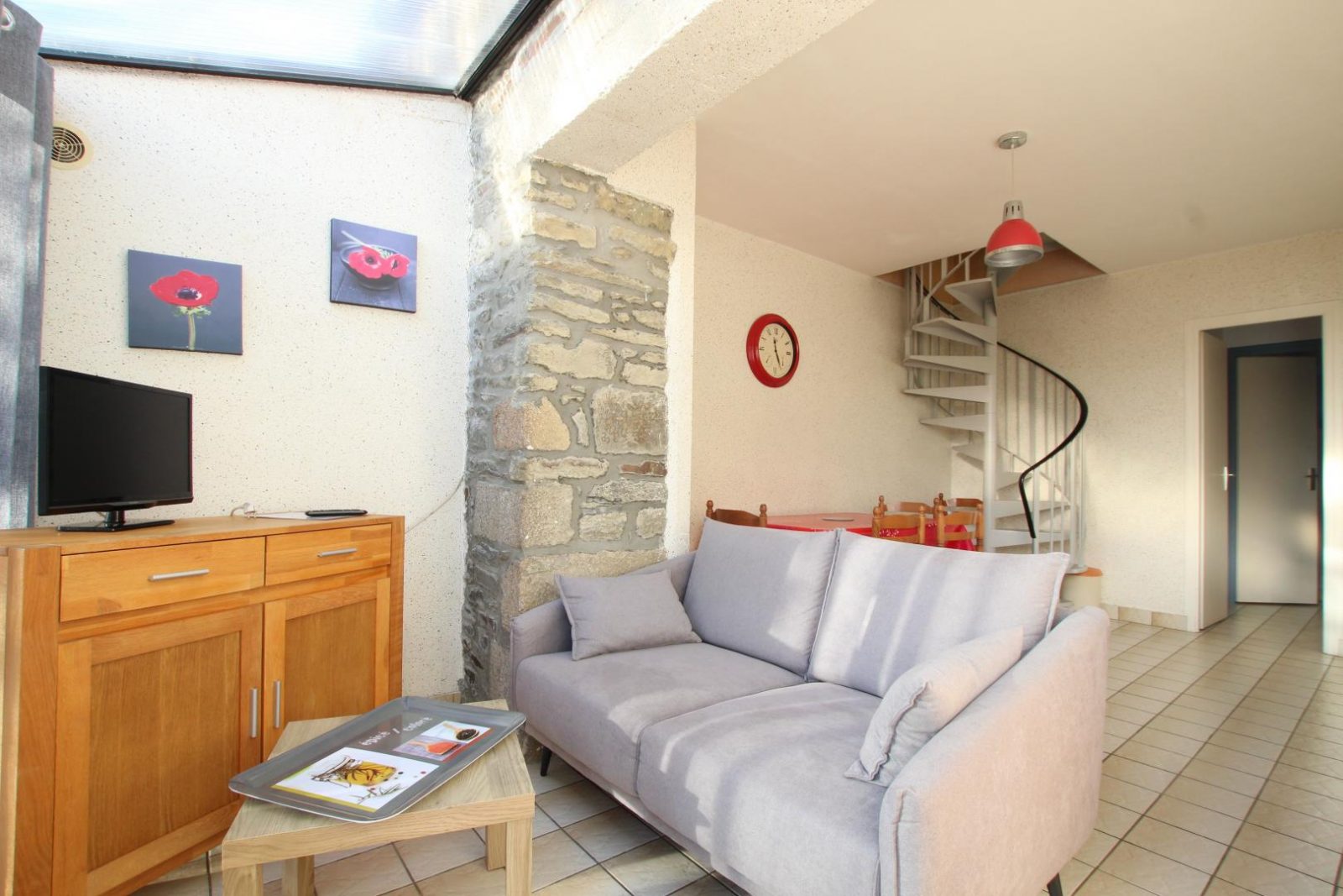 Maison mitoyenne. Séjour. Coin-cuisine. 2 chambres à l'étage (accès par petit escalier en colimaçon). 1 lit 140x190. 2 lits 90x190. 1 lit bébé. Salle d'eau. Wc. TV. Point d'accès wifi dans la partie commune pour les hébergements sur site. Lave-linge commun. Draps et linge de maison non fournis. Pas de service ménage proposé. Chauffage électrique compris. Terrain clos commun. Salon de jardin. Ping-pong. Terrain de pétanque.