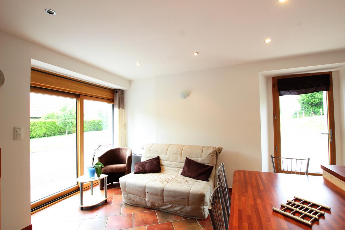 Maison mitoyenne à celle du propriétaire. Cuisine équipée (four, lave-vaisselle) ouverte sur le séjour salon (TV, internet wifi). wc (lave-linge). A l'étage, chambre (1 lit 140x190). Salle d'eau. Wc. Equipement bébé. Draps fournis. Lit fait à l'arrivée. Chauffage électrique en supplément. Service ménage en supplément. Terrain clos commun. Terrasse. Salon de jardin. barbecue.