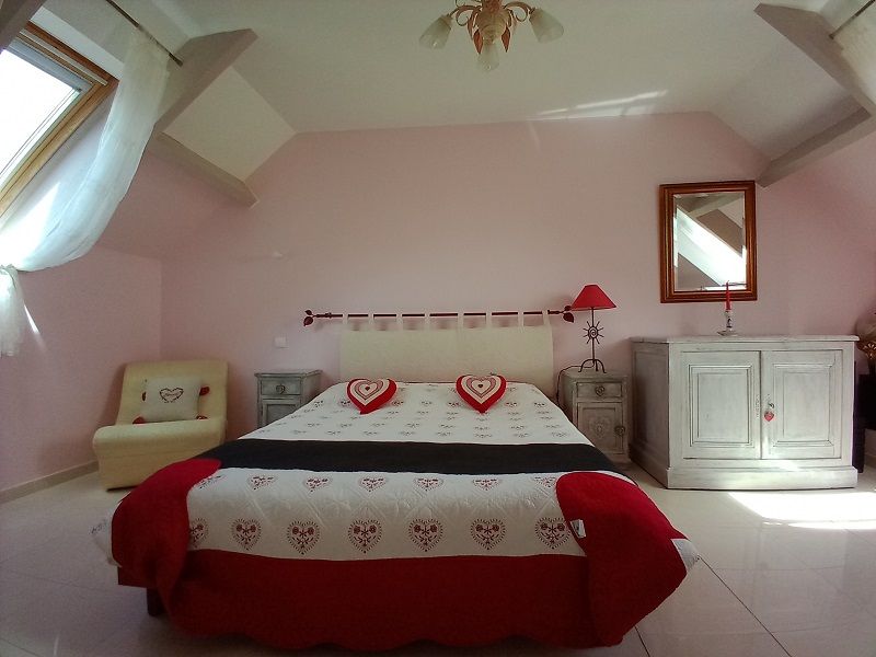 A l’ étage deux chambres avec un lit 160x190 avec télévision, une chambre avec un lit 140x190, salle d’eau avec douche à l’italienne et WC.