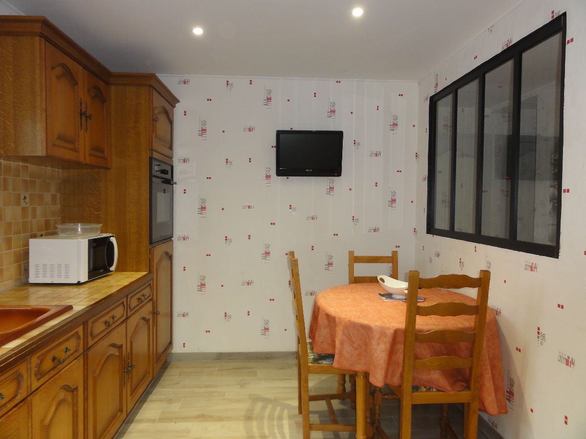 Maison indépendante avec une cuisine équipée et aménagée, un salon, une salle d'eau, une chambre et WC séparés.