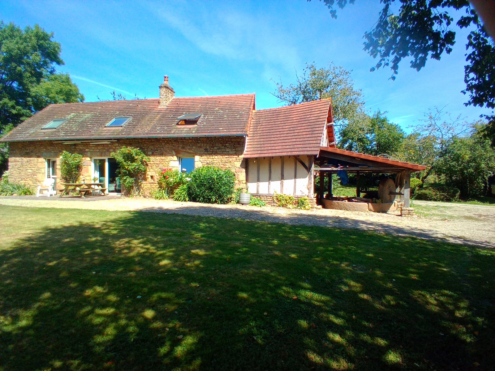 Le charme authentique de son four à pain et de son traditionnel tour de pressoir. Idéale pour se retrouver en famille autour du jardin et sa petite rivière.