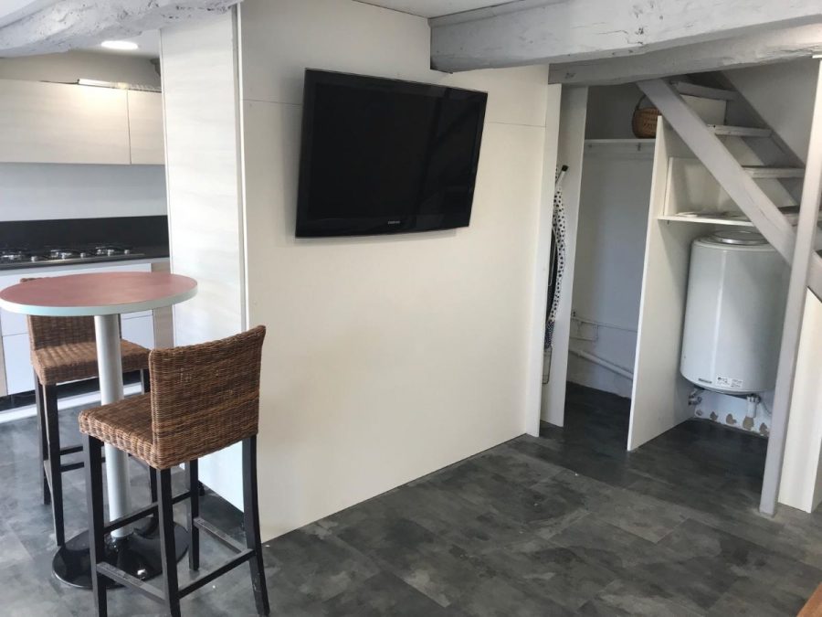 Loft comprenant une pièce au 1er étage, coin salon avec canapé lit et télévision, une kitchenette équipée.