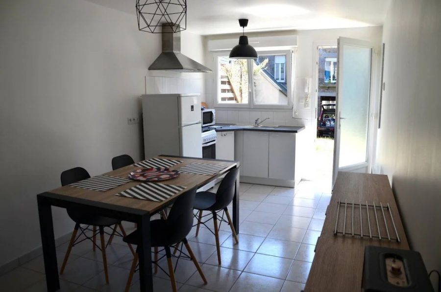 En plein centre-ville d'Avranches dans une petite ruelle, se situe cette petite maison mitoyenne sur trois niveaux, dans une cour intérieure fermée et abritée du vent. Exposée plein sud et au calme, vous pourrez ainsi profiter des extérieurs grâce à la petite terrasse en bois. La cour intérieure est accessible en voiture, l'accès est cependant étroit et plus facile avec un petit véhicule, un parking est disponible à proximité.
