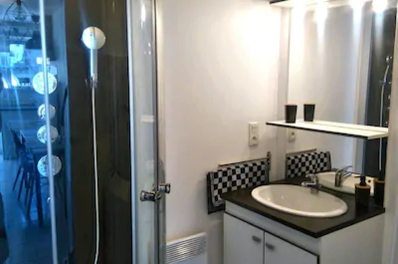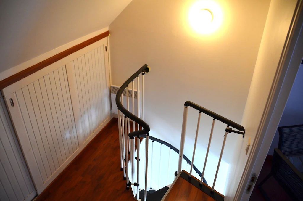 Au rez-de-chaussée, séjour avec coin cuisine, salle d'eau et WC. Au 1er étage, un coin salon (TV, internet) avec couchage (lit double) et au 2ème étage, une petite chambre sous les toits (2 lits simples). L'accès au 1er étage se fait par un escalier hélicoïdal étroit et peu adapté pour des personnes à mobilité réduite ou des enfants.
