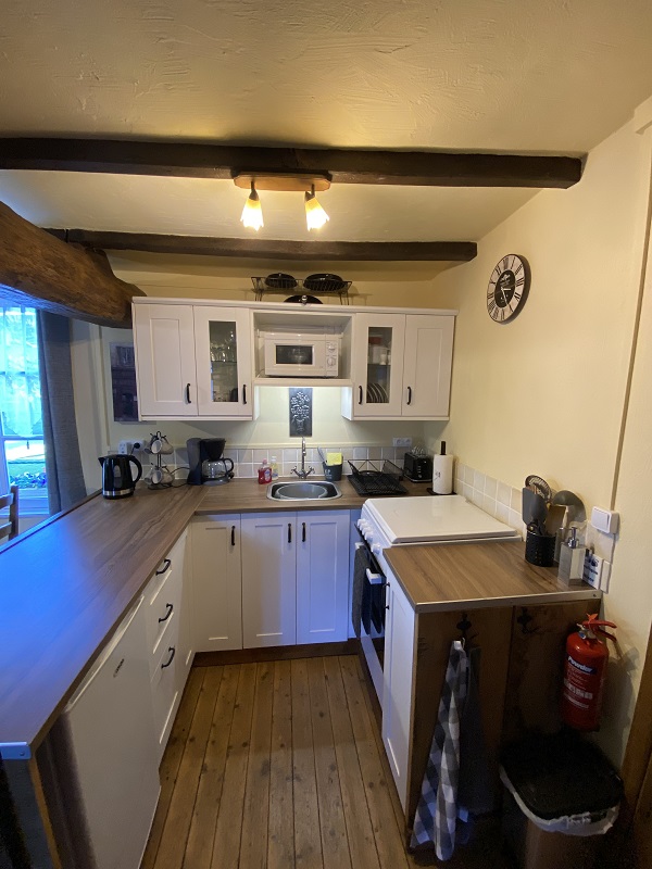 Le salon, ouvert sur une salle à manger et une cuisine entièrement équipée, constitue un espace convivial et lumineux pour partager des repas ou se détendre. L'accès au cottage se fait au premier étage, par un escalier extérieur, offrant ainsi une parfaite indépendance et tranquillité.