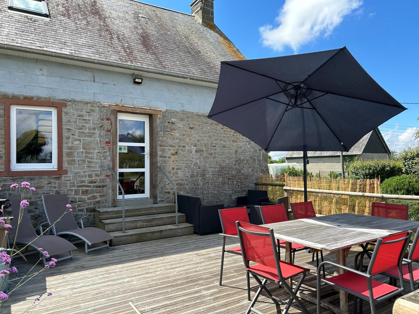At the foot of the Avranches hill, the village of Val Saint-Père marks the first shores of the bay of Mont St-Michel. Between the mouths of the Sée and the Sélune, the town offers in particular a very beautiful segment of hiking at the bottom of the bay. It is in this advantageous environment that your gite awaits you in a peaceful hamlet. Quentin and Lucie worked on the rehabilitation of a stone building by adding a modern touch and contemporary decoration. The differences in levels make the place atypical. The house has a large wooden terrace and grassy grounds. A garden with aromatic plants is at your disposal. The cottage will suit families with children: enclosed grounds, baby equipment, games, outdoor games (trampoline and playground).