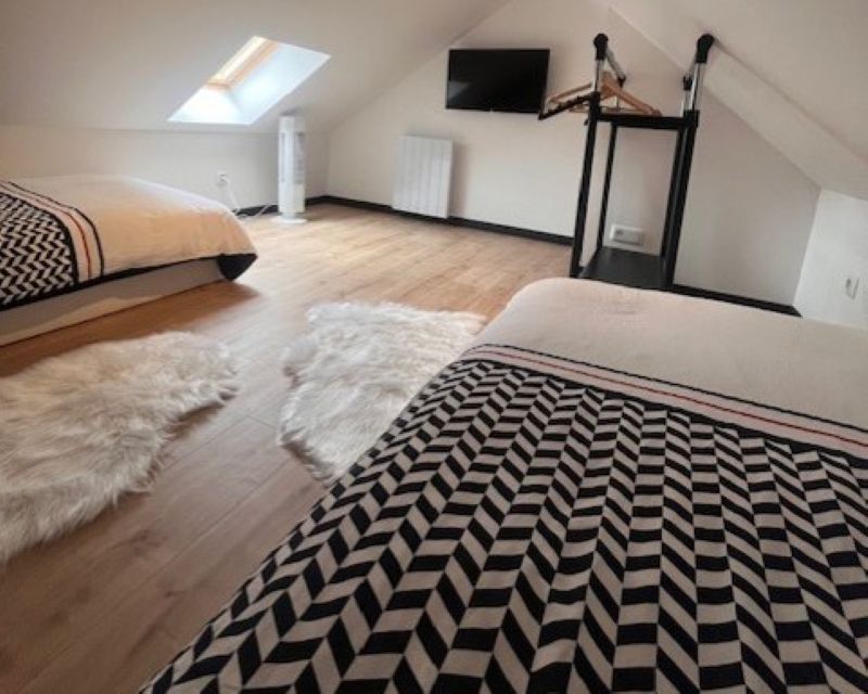 Enjoy a unique stay in Avranches, near Mont Saint-Michel. Our apartment sleeps up to 4, with an upstairs bedroom (2 single beds) and a comfortable sofa bed. Modern, fully-equipped kitchen (dishwasher), bathroom with whirlpool bathtub and massage seat for total relaxation. Free Wi-Fi and flat-screen TV included. Perfect for discovering the charms of Avranches and the wonders of the region. Book your room now!