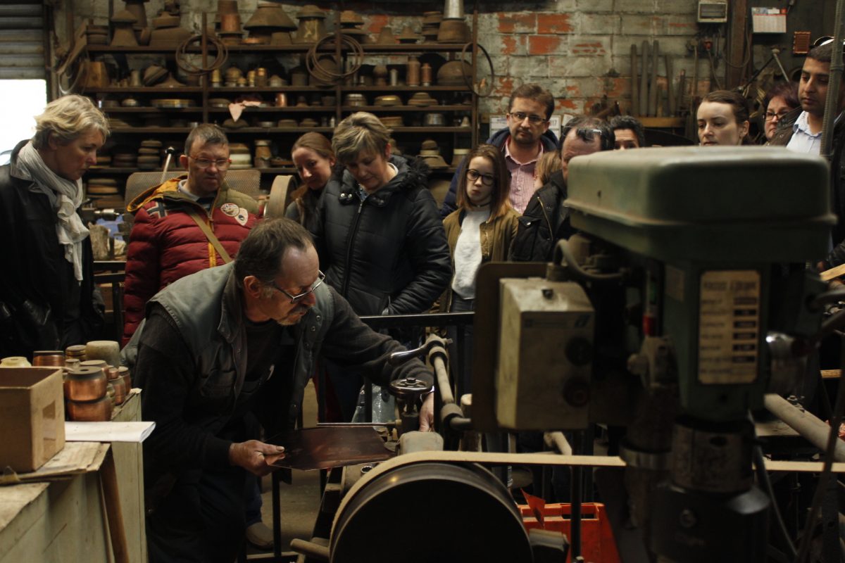 At the Atelier du Cuivre, located on the other side of the town centre, you’ll be met by the sound of hammering as soon as you enter the hall! Passing through the doors of this rustic workshop, furnished with antique tools and scraps of copper, tin or brass, you can follow the works in progress – sometimes with commentary from the workers themselves. There, you can see them at work as you learn about the different workstations: embossing, tinning, polishing, and hammering, with the latter having served as the daily rhythm of the town’s inhabitants for centuries. Visitors are free to try their hand at the trade if they fancy it at the end of the visit.