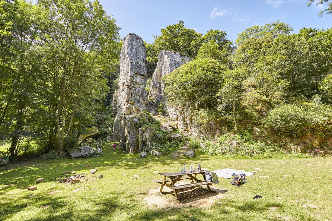 A total of 180 climbing routes are available on the sandstone mountains, for all levels: beginners and experienced climbers. And for lovers of hiking and walking, a 7 km circuit travels around the Fosse Arthour, revealing its iconic sites, straight from the pages of the Arthurian legends.