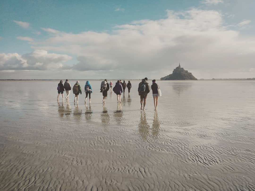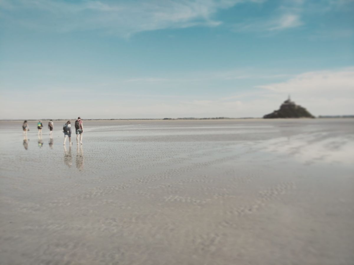 - or the great 13km crossing: round trip from the Bec d’Andaine (Genêts) or the Grouin du Sud (Vains/Sains-Léonard) to Mont Saint-Michel, to experience the ancestral custom of pilgrims who went to Mont Saint-Michel on foot. This outing is also offered as a one-way trip with a return by bus by some guides (6/7km – return by bus).