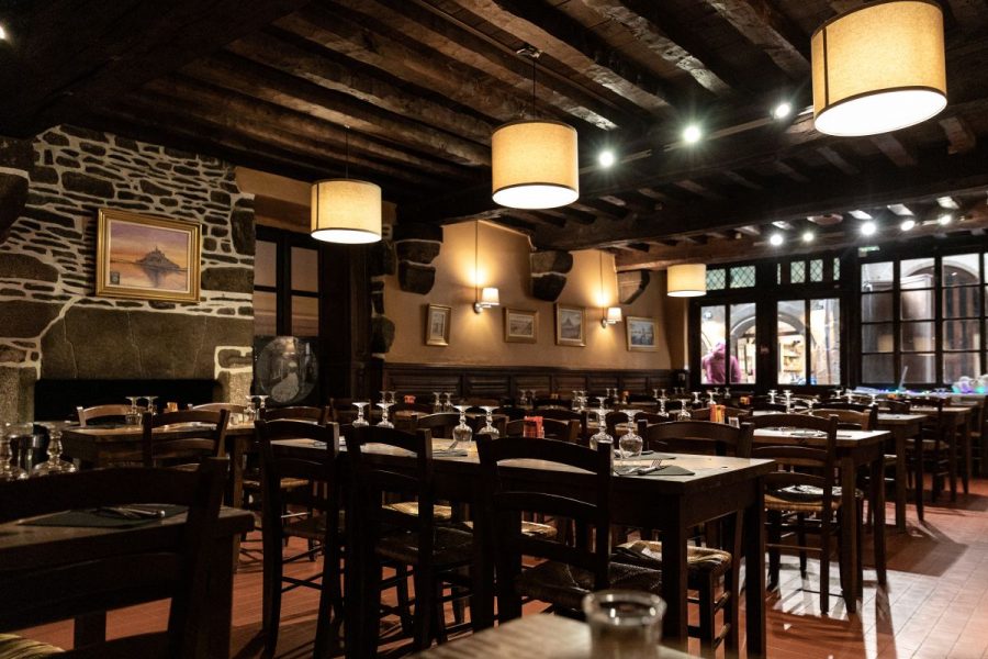 The Auberge du Mouton Blanc is located inside Mont-Saint-Michel. The inn has 3 rooms with a total capacity of 220 covers, including one with a view over the bay of Mont Saint-Michel.