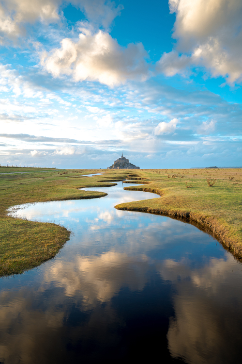 ¿Cómo? Me dicen que no conoces esa maravillosa vista del Monte Saint-Michel???? ¿Esa serpentina creada naturalmente por una pequeña corriente de agua que esculpió esa increíble ondulación en la hierba pre-salada? Pero eso sí, debes conocer esta imagen y, al igual que yo, no te resistirás a dibujarla al carboncillo o al lápiz. Este hermoso lugar se encuentra en Ardevon, y como soy un verdadero apasionado de mi hermoso país, voy a menudo allí, pero como el clima a veces no es muy clemente para una larga pausa de creación pictórica, tomo una foto de ella. ¡Y como todas las fotos de la bahía, los colores nunca son los mismos (digo “nunca”) lo que me ofrece una cantidad faraónica de posibilidades creativas con esta vista tan perfectamente perfecta!