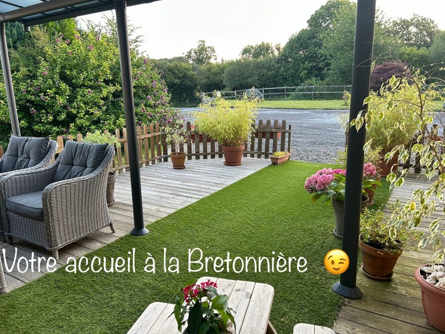 La Bretonnière es una gran casa de una sola planta rodeada de un hermoso y amplio jardín, frente a la bahía del Monte Saint-Michel, a dos kilómetros del mar, entre Genêts (punto de partida de las travesías de la bahía) y Granville.