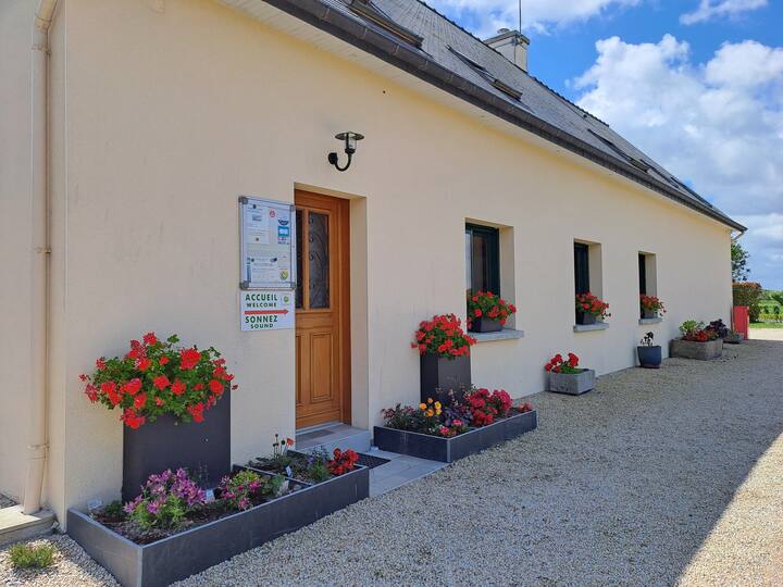 Casa reciente rodeada de campos y páramos, situada a 1 km del aparcamiento del Mont Saint-Michel. A lo largo del pequeño sendero que conduce a la casa, descubrirá la Maravilla del Oeste, con sus rebaños de ovejas de los prados salados. Arriba, un dormitorio con su suite complementaria (2 camas dobles) y 3 dormitorios dobles. Cocina americana disponible. Rutas de senderismo y vía verde cerca. Restaurantes cercanos. Podrá observar la trashumancia de las ovejas todas las tardes a 500 m de mi casa.