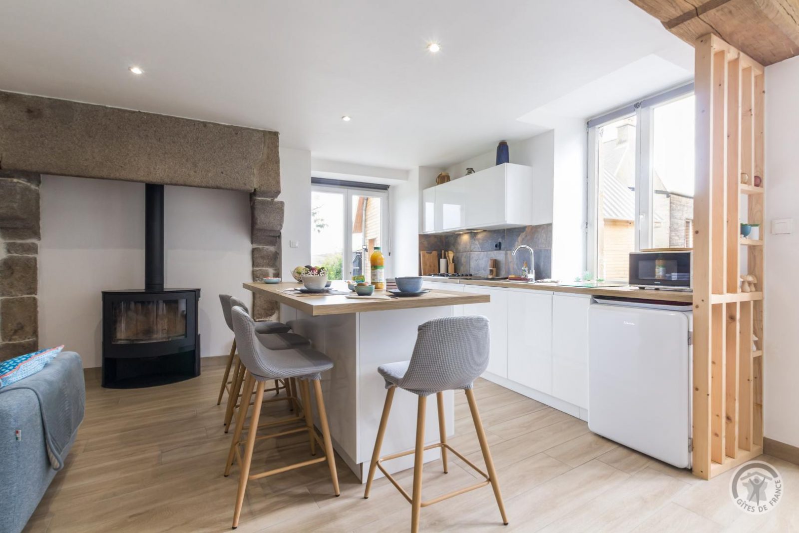 Casa independiente. Planta baja: Salón con estufa de leña (TV, Internet por fibra, juegos de mesa). Cocina americana (placa de gas, horno eléctrico, cafetera exprés, microondas, lavavajillas, frigorífico). Cuarto de baño (ducha, radiador toallero, secador de pelo). WC. Lavadero (lavadora, 2a nevera). Arriba: Dormitorio 1 (cama 140x190) Dormitorio 2 (2 camas gemelas 80x190) Estudio (pequeño altavoz conectado, cama supletoria plegable 90x190). WC. Exterior: jardín privado sin vallar. Patio seguro con puerta. Plaza de aparcamiento. Terraza. Muebles de jardín. Tumbonas. Sala de juegos en anexo exterior (ping-pong, dardos, Molky). Calefacción eléctrica incluida. Uso de estufa de leña previo acuerdo con el propietario (consumibles incluidos). Todos los servicios incluidos. Ropa de cama y toallas opcionales. Limpieza de final de estancia incluida. Equipamiento para bebés.