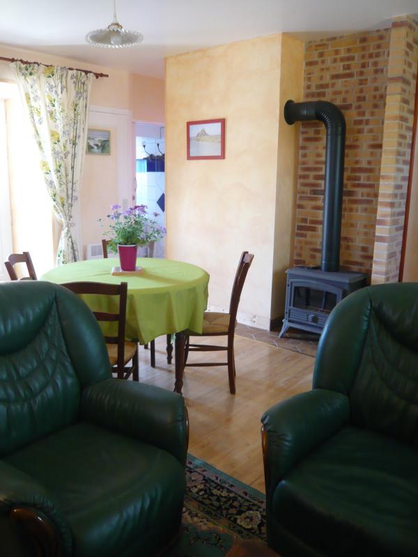 Casa contigua a la vivienda de los propietarios. Planta baja: Salón con estufa de leña (TV, Internet, cable Ethernet RJ45, radio). Rincón cocina (cocina de gas, microondas, lavavajillas, congelador). Dormitorio 1 (cama 140x190), cuarto de ducha con WC (lavabo, ducha, radiador toallero). Trastero. Arriba: Dormitorio 2 (2 camas 90X190) con lavabo. WC. Lavadora (sótano). Terreno privado no cerrado. Muebles de jardín. Barbacoa. Juego de petanca. Aparcamiento. Calefacción eléctrica incluida. Todos los gastos incluidos. No se proporcionan sábanas ni ropa de hogar. Servicio de limpieza extra. Cuna.