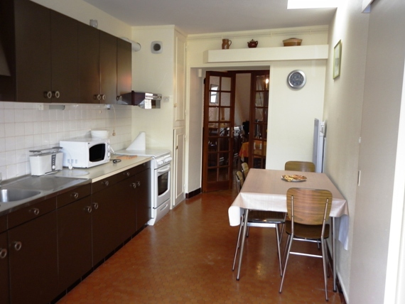 Casa adosada en el pueblo de Genêts. Patio cerrado con jardín y césped (muebles de jardín y barbacoa). En la planta baja, salón y baño, arriba 2 dormitorios, todo en 60m²