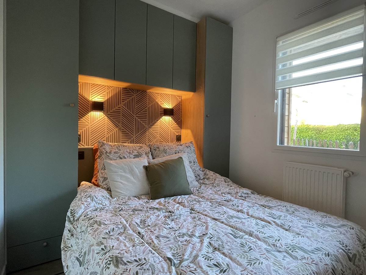 Regálate un paréntesis de paz en esta encantadora casa de madera, ideal para una escapada de dos o cuatro personas. Ubicada en un entorno tranquilo y frondoso, es una invitación al descanso y la relajación.