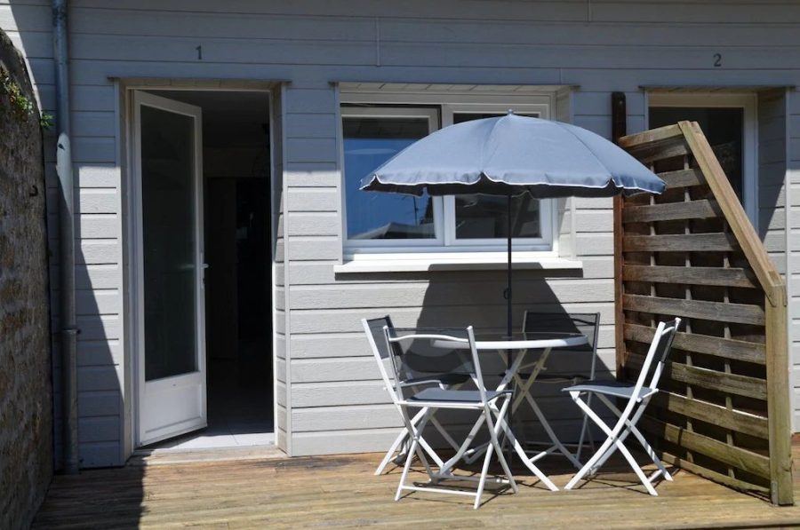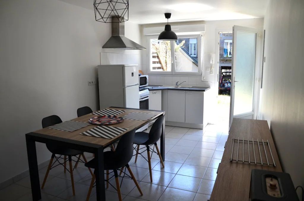 Esta pequeña casa adosada de tres plantas se encuentra en una pequeña callejuela del centro de Avranches, en un patio cerrado protegido del viento. Orientado al sur y tranquilo, podrá disfrutar del aire libre gracias a la pequeña terraza de madera. Se puede acceder al patio en coche, aunque el acceso es estrecho y más fácil con un vehículo pequeño. Hay aparcamiento en las inmediaciones.