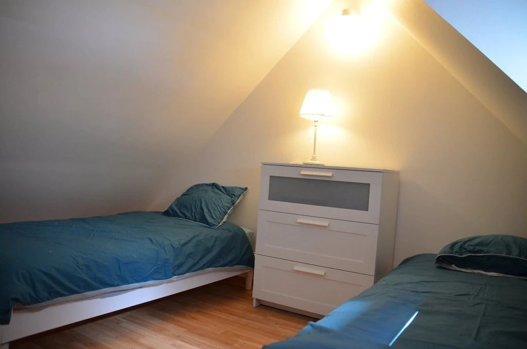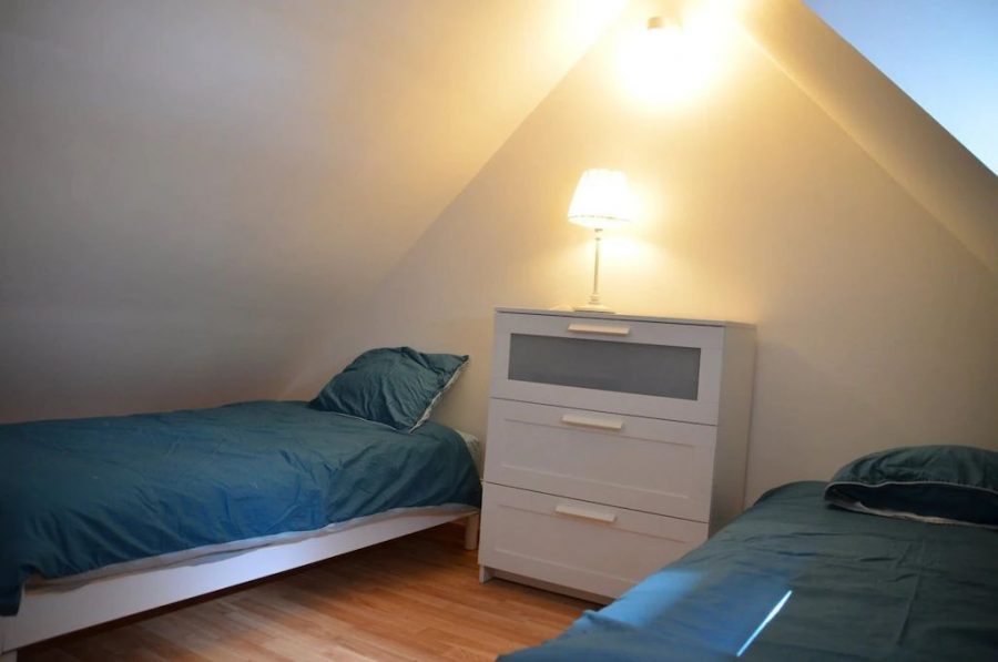 La planta baja consta de una sala de estar con zona de cocina, cuarto de ducha y WC. En la 1ª planta, una sala de estar (TV, Internet) con zona de dormitorio (cama doble) y en la 2ª planta, un pequeño dormitorio bajo el techo (2 camas individuales). El acceso a la 1ª planta es a través de una estrecha escalera de caracol no apta para personas con movilidad reducida o niños.