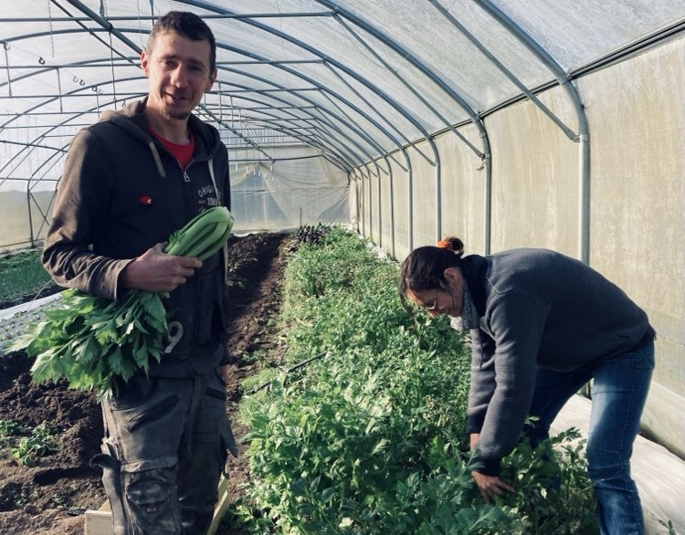 Vendemos verduras directamente de la granja, así como otros productos ecológicos y locales (pan, zumo de manzana, huevos, etc.). Las verduras se cultivan en plena tierra, al aire libre o en túneles para las verduras que requieren más calor (tomates, berenjenas, etc.). Apostamos por la agricultura ecológica y a pequeña escala.