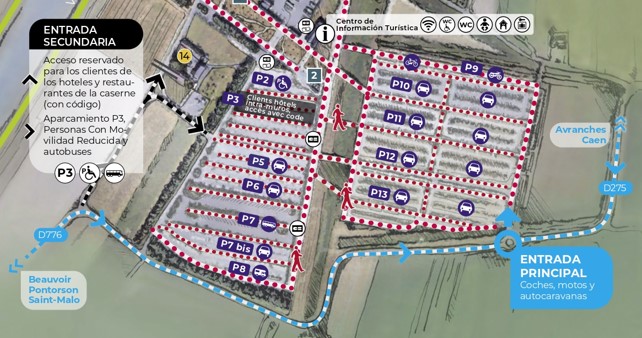 - P8: Este aparcamiento está dedicado a las autocaravanas (máximo 24 horas, sin baños disponibles)
