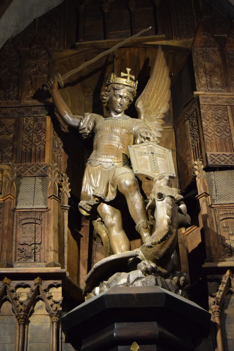 La iglesia parroquial, un pequeño edificio de los siglos XV y XVI está dedicada a San Pedro, patrón de los pescadores y, para los católicos, el poseedor de las llaves del paraíso. Los peregrinos pasan por allí simbólicamente antes de llegar a la abadía, imagen del paraíso en la tierra. La estatua de Juana de Arco entronizada en la entrada rinde homenaje al Arcángel, que la guió durante la Guerra de los Cien Años. El cementerio del pueblo, situado justo al lado de la iglesia, alberga en particular la tumba de los esposos Poulard. Desde 1886, la iglesia parroquial es el lugar oficial de devoción a San Miguel y allí se celebran oficios con regularidad. El Santuario y la Oficina de Turismo participan activamente en la Asociación de Ciudades Santuario de Francia, que aglutina 18 importantes destinos religiosos y turísticos.