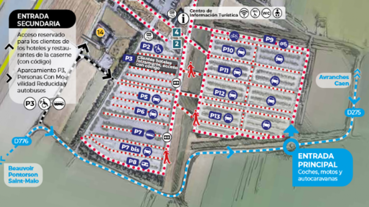 Para obtener más información sobre aparcamientos y transporte: +33 (0)2 14 13 20 15 o keolis.montsaintmichel@keolis.com