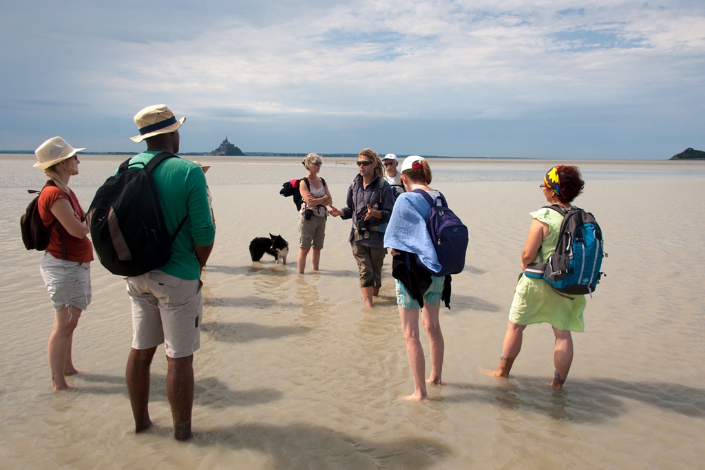 Le départ est programmé très tôt après la pleine mer pour être au plus proche des éléments et avoir une vision de la baie totalement différente entre l'aller et le retour. Les bancs de sable nous permettent de rallier l'îlot de Tombelaine pour le pique-nique pendant ce temps les passages s’ouvrent en direction du Mont Saint-Michel.