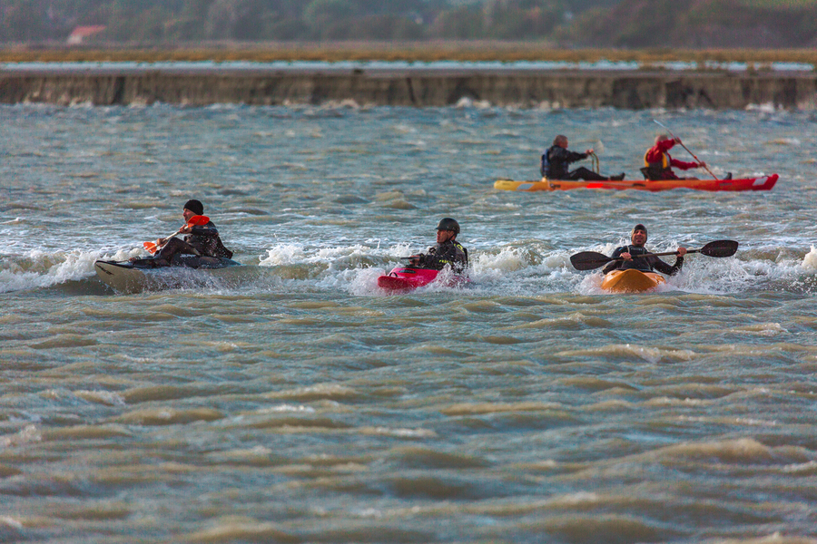 Il n’est pas rare de voir des kayakistes profiter du plaisir de surfer sur la barre. Mais il faut être un sportif entraîné, car la force du courant est surprenante et pourrait les déséquilibrer.