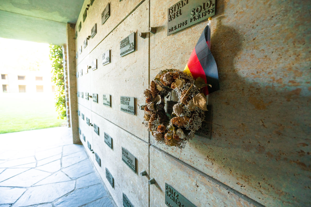 Au total, 11 956 personnes reposent ici. Des hommes, soldats allemands tombés durant les combats, mais aussi des femmes et des enfants. Les dépouilles viennent du quart ouest de la France et des îles Anglo-Normandes.