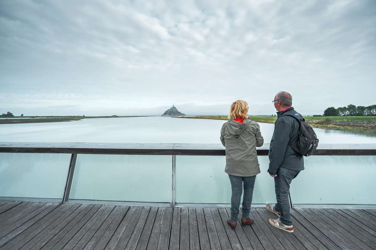 Le Mont Saint-Michel est accessible par le Pont Passerelle depuis la voie verte (Pontorson/Le Mont-Saint-Michel), ainsi que depuis les sentiers aménagés à partir du parking. La navette « Le Passeur » circule depuis le parking et le barrage gratuitement *.