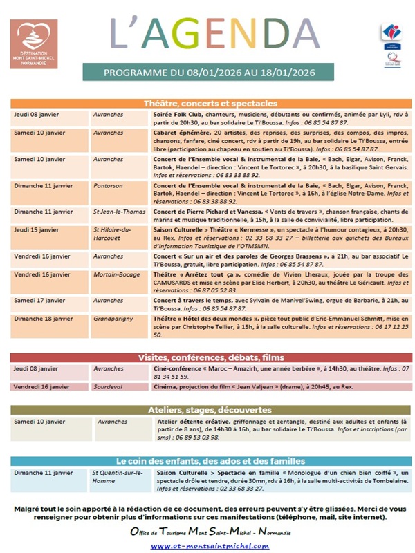 L’Office de Tourisme Mont Saint-Michel – Normandie met en place un nouveau service. Faites vous-même l’annonce de vos événements sur l’agenda de notre site internet.