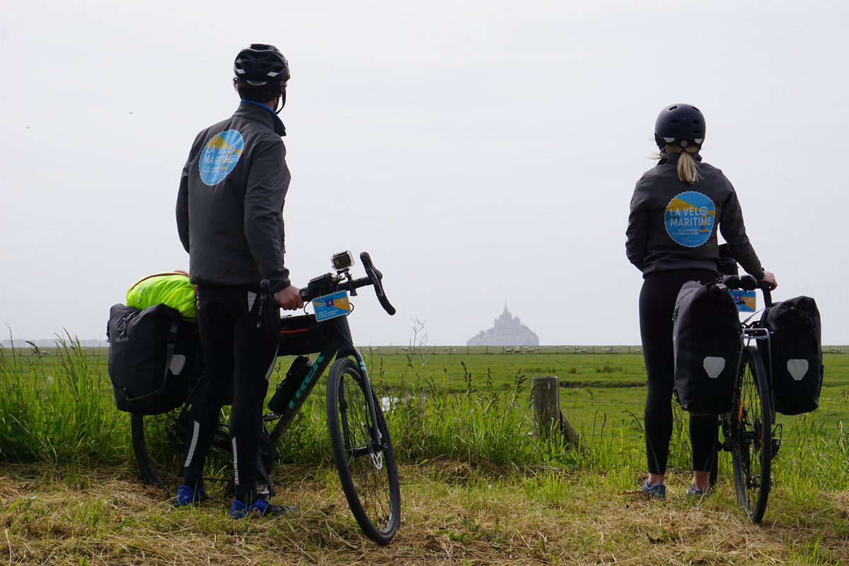 ©Les valises de Sarah – Calvados Attractivité ![Arrivée de la Vélomaritime au Mont Saint Michel]()