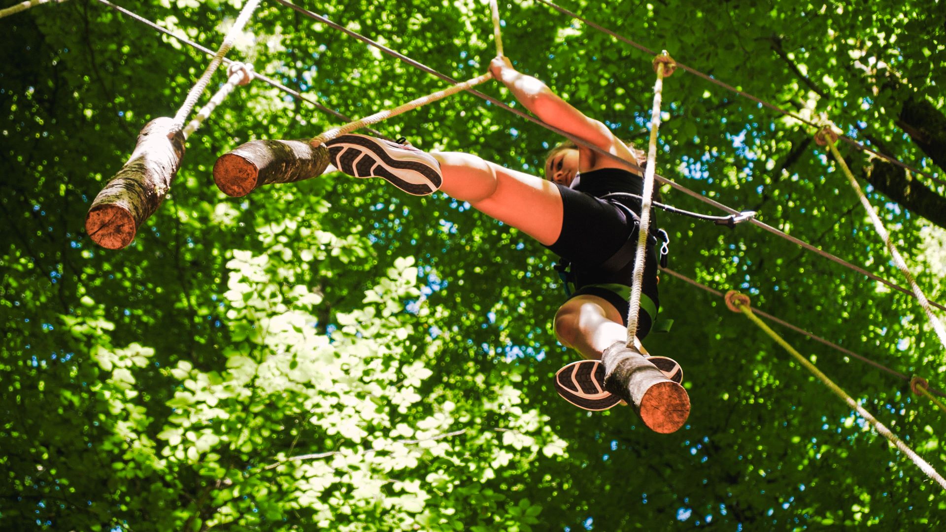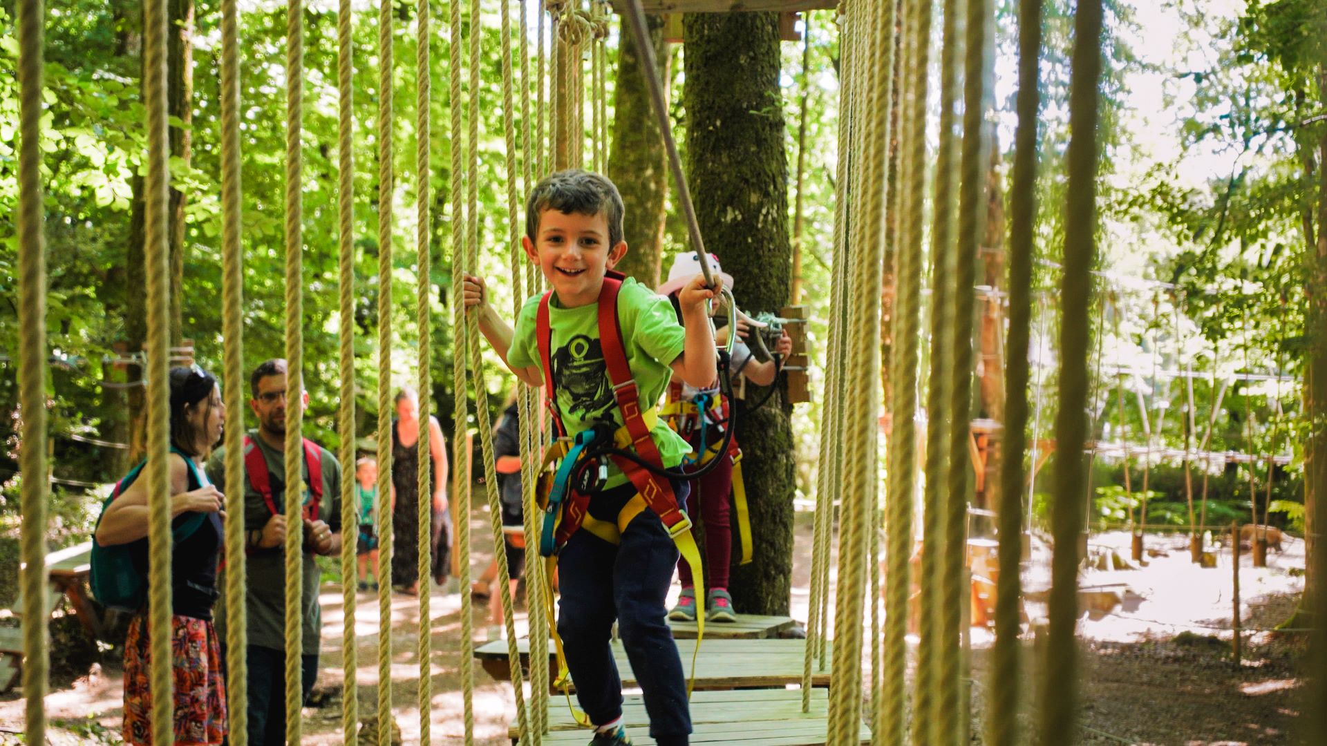 Accrobranche : 16 parcours équipés en ligne de vie continue. 7 niveaux de difficultés pour vous dépasser !