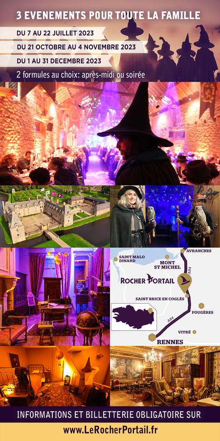Plongez dans l’univers du Rocher Portail et son tout nouveau parc à thème unique en Bretagne. Des professeurs hauts en couleur, dans un décor historique immersif, vous proposent de percer les secrets de la magie. Entre banquet, démonstration de magie, cours de sortilèges et vol de balai…